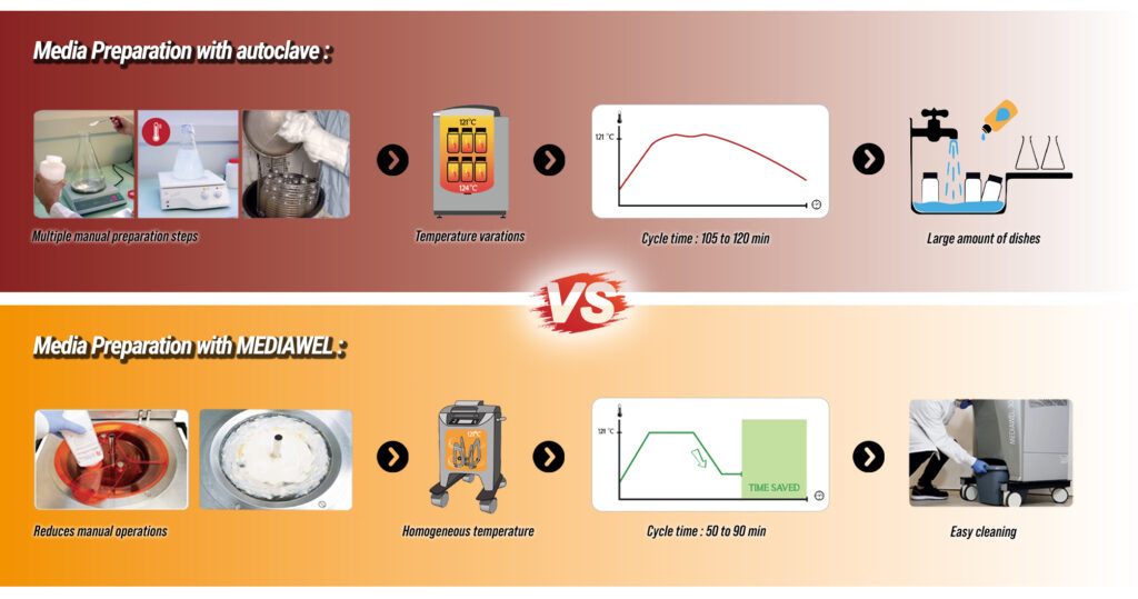 Los preparadores automáticos, como los modelos MEDIAWEL, ofrecen soluciones integrales que optimizan el proceso de preparación de medios de cultivo: